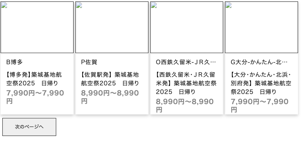 築城基地航空祭は、博多や久留米などから発着で日帰りのバスツアーが読売旅行から企画されています。